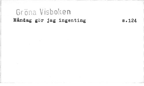 //// Gröna Visboken 8.124 //// Måndag gör jag ingenting ////