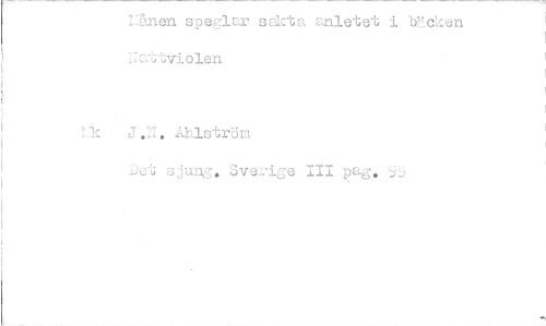 //// :länen speglar sa:ta anletet i 1V.cken 1Tattviolen //// l'ac J .75 Åhlström //// De'k; sjung. Sverige III pag. 99 ////