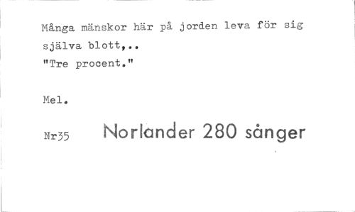 //// Många mänskor här på jorden leva för sig själva blott,.. //// "Tre procent." //// Mel. //// Nr35 Norlander 280 sånger ////