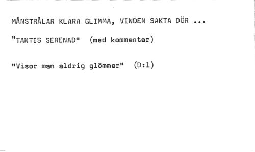 //// MANSTRÅLAR KLARA GLIMMA, VINDEN SAKTA DÖR ... "TANTIS SERENAD" (med kommentar) //// "Visor man aldrig glömmer" (D:1) ////