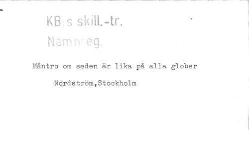 //// KB:s s ill.-tr //// N //// Måntro om seden är lika på alla glober Nordström,Stockholm ////