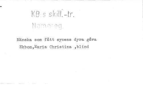 //// IKE3: s //// Mänska som fått synens dyra gåva Ekbom,Maria Christina ,blind ////