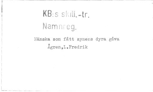 //// KB: s shtL-tr. //// Namweg. //// Mänska som fått synens dyra gåva Ägren,L.Fredrik ////