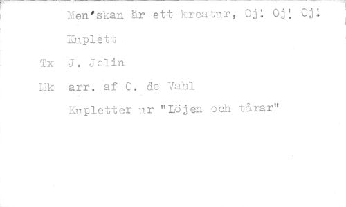 //// Men'skan är ett kreatur, Oj! 02 Oj! Kuplett //// Tx J. Jolin //// lik arr. af 0. de Vahl //// KUpletter ur "Löjen och tårar" ////