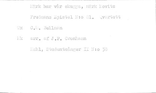 //// Lärk hur vår skupual märk kovitz 2redmans 44istel N:o 81, „vartett 2x C,L, Bellman //// Lic arr, af J.P, Cronhann //// 7h1, Studentsånger Il N:o 38 ////