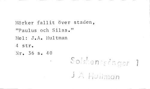 //// Mörker fallit över staden, "Paulus och Silas." //// Mel: J.A. Hultman //// 4 str. //// Nr. 36 s. 40 //// n ////