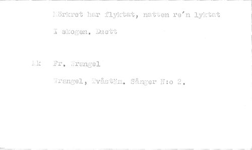 //// Lörkret har flyktat, natten re'n lyktat skogen. IDuett //// Lk Fr, ';Vrangel' //// "Yrangel, 2våstU„m. Sånger N:o 2. ////