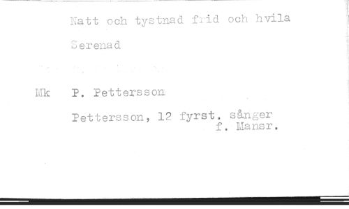 //// Natt och tystnad fiid och hvila Serenad //// Lik P. Pettersson //// Pettersson, 12 fyrst sånger //// f. Mansr. ////