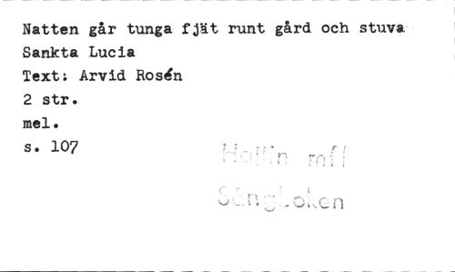 //// Natten går tunga fjät runt gård och stuva' Sankta Lucia //// Text: Arvid Ros‘n //// 2 str. //// mel. //// s. 107 f //// . //// N //// u , n ////