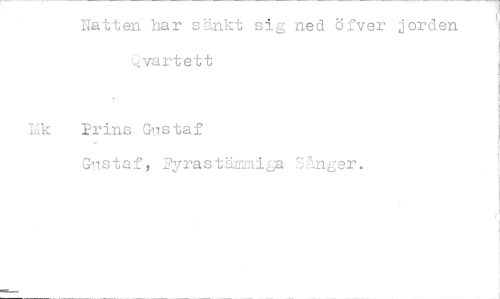 //// Natten har sänkt sig ned öfver jorden Civartett //// Mk Prins Gustaf //// Gu taf, Fyrastämmiga Sånger. //// ^ ////