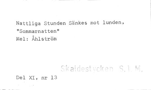 //// Nattliga Stunden Sänkes mot lunden, "Sommarnatten" //// Mel: Åhlström //// Del XI, nr 13 ////