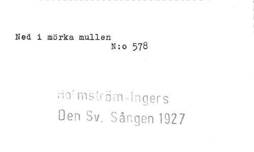 //// Ned i mörka mullen //// N:o 578 //// Igers //// Oen Sv. Sången 1927 ////