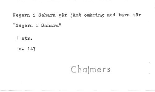 //// Negern i Sahara går jämt omkring med bara tår "Negern i Sahara" //// 1 str. s. 147 //// Chalmers ////