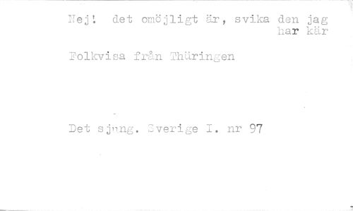 //// Nej; det omöjligt är, svika den jag //// har kär //// Folkvisa från ThUringen //// Det sjnng. Sverige I. nr 97 ////