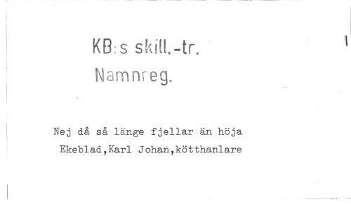 //// skill.-tr. //// Namnreg. //// Nej då så länge fjellar än höja Ekeblad,Karl Johan,kötthanlare ////