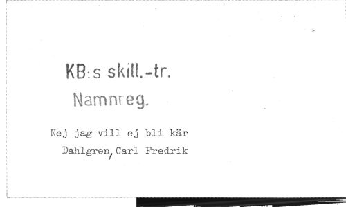 //// KR: s skitl.-tr. //// Namnreg, //// Nej jag vill ej bli kär Dahlgren/Carl Fredrik ////