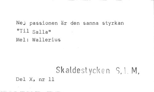 //// Nej passionen är den sanna styrkan //// "Til Saila" Mel: Wallerius //// Skaldestycken S,1. NI, //// Del X, nr 11 ////