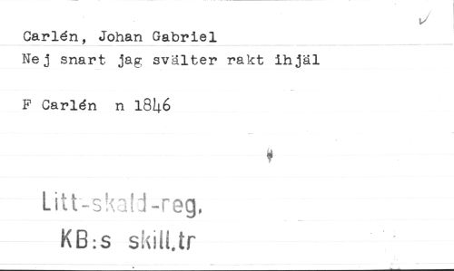 //// Carldn, Johan Gabriel //// Nej snart jag svälter rakt ihjäl //// F Carldn n 1846 //// litt-skati-reg, //// KB:s skill.tr ////