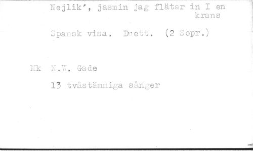 //// Uejlik', jasmin jag flätar in I en //// krans //// Spansk visa. IC.ett. (2 Sopr.) //// rk N . . Ga de //// 13 tvåstämmiga sånger ////