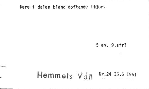 //// Nere i dalen bland doftande lidor. //// 5 ev. 9.str? //// Hemmets Veill Nr.24 15.6 1961 ////