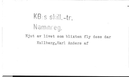 //// KB: s ski[1.-tr. //// Namnreg. //// Njut av livet som blixten fly dess dar KUllberg,Karl Anders af ////