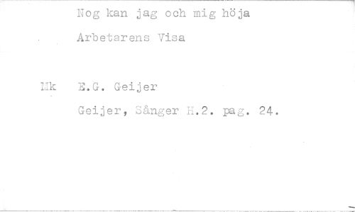 //// Nog kan .jag och mig höja Arbetarens Visa //// Mk E.G. Geijer //// Geijer, Sån2.er H.2. pag. 24. ////