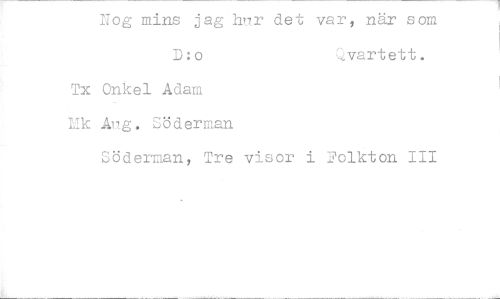 //// Nog mins jag hur det var, när som D:o //// Tx Onkel Adam //// Lik Aug. Söderman //// Söderman, Tre visor i Folkton III ////