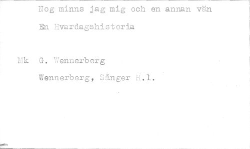 //// Nog minns jag mig och en annan vän En Hvardagshistoria //// Vik G. Wennerberg Wennerberg, Sånger H.1. ////
