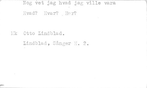 //// Nog Vet jag hvad jag ville vara Sva d? iivar? I-117 r? //// Fic Otto Lindblad. Lindblad, Sånger H. 2. ////