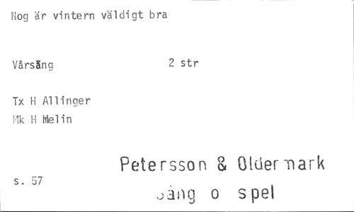 //// Nog är vintern väldigt bra //// Vårsäng 2 str //// Tx H Allinger //// H Melin //// s. 57 Petersson Order-flark //// Jång o s pel ////