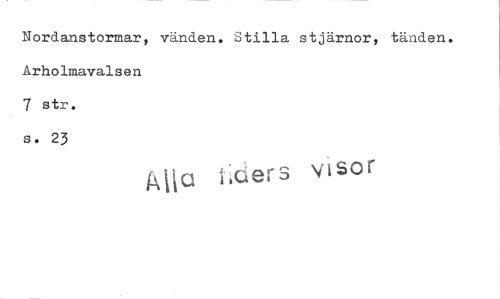 //// Nordanstormar, vänden. Stilla stjärnor, tänden. Arholmavalsen //// 7 str. //// s. 23 //// Mia tiders visor ////