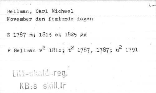 //// Bellman, Carl Michael November den femtonde dagen //// E 1787 m; 1813 e; 1825 gg //// F Bellman r2 181o; t2 1787, 1787; u2 1791 //// L't 1-- //// KO:s s:då tr ////