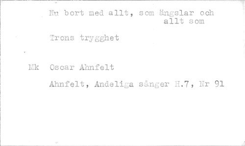 //// . Nu bort med allt, som ängslar och //// allt som //// Trons trygghet //// Mk Oscar Ahnfelt //// Ahnfelt, Andeliga sånger 11.7, Nr 91 ////