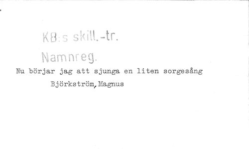 //// KB:s //// Namnveg. //// Nu börjar jag att sjunga en liten sorgesång Björkström,Magnus ////
