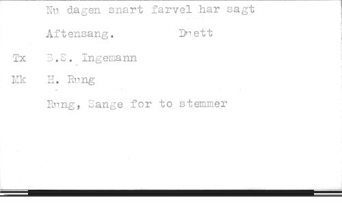 //// Nu dagen snart farvel har sagt Aftensang. Dnett //// Tx B.S.- Ingemann Mk H. Rnng //// Rung, Sange for to stemmer ////