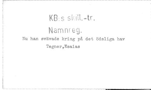 //// KB: s //// Namnreg. //// Nu han svävade kring på det ödsliga hav Tegner,Esaias ////