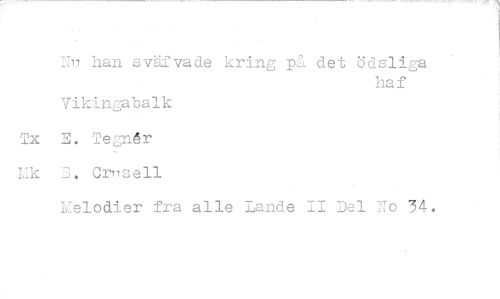//// XII han sväfvade kring på det ödsliga //// haf //// Vikingabalk //// Tx E. Tegn6r //// rk B. Crvisell //// Melodier fra alle Lande II Del No 34. ////