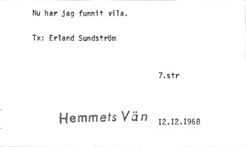 //// Nu har jag funnit vila. //// Tx: Erland Sundström //// 7.str //// Hemmets Vä n 12.12.1968 ////