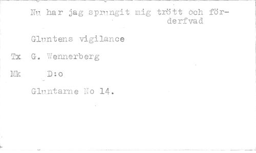 //// Np har jag spr/ngit mig trött och för- //// derfvad //// Glnntens vigilance Tx. G. Wennerberg //// Mk D:o //// Glnntarne No 14. ////