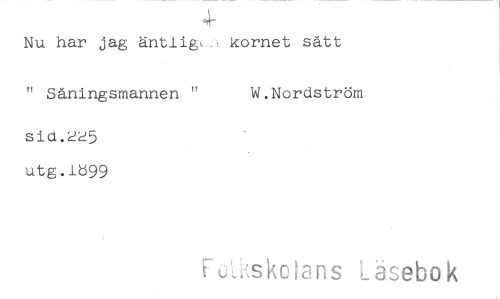 //// Nu har jag äntligu kornet sått //// " Såningsmannen " W.Nordström //// sid.225 utg.1ö99 //// _skolans äsebok ////