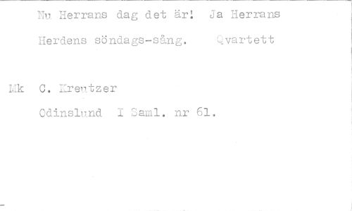 //// Nu. Herrans dag det är! Ja Herrans Herdens söndags-sång. Qvartett //// Vik C. Hrerttzer //// Odinslund 1 Saml. nr 61. ////