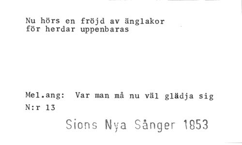 //// Nu hörs en fröjd av änglakor för herdar uppenbaras //// Mel.ang: Var man må nu väl glädja sig N:r 13 //// Sions Nya Sånger 1953 ////