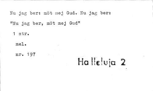 //// NU jag ber: möt mej Gud-. Nu jag ber: "Nu jag ber, möt mej Gud" //// tr. //// mel. //// nr. 197 //// i.c ula 2 ////