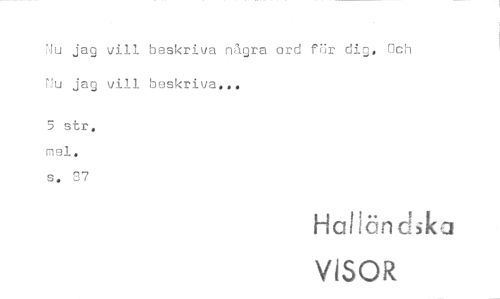 //// Nu jag vill beskriva några ord .nr dig. Och Nu jag vill beskriva... //// 5 str. mel. //// s. 87 //// Halländska //// VISOR ////