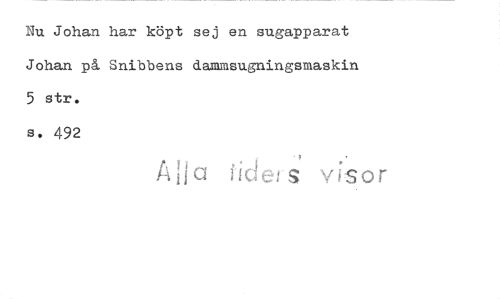 //// Nu Johan har köpt sej en sugapparat Johan på Snibbens dammsugningsmaskin 5 str. //// s. 492 //// Alia fide] s \lisor ////