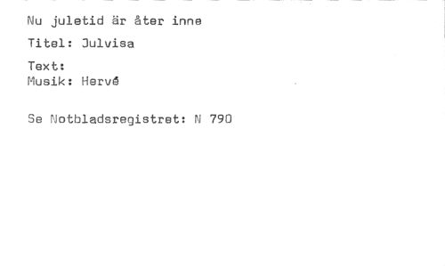 //// Nu juletid är åter inne Titel: Julvisa //// Text: //// Musik: Hervå //// Se Notbladsregistret: N 790 ////