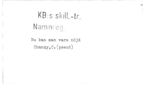 //// KB:s skill.-tr. //// Namnr //// Nu kan man vara nöjd Chanzy,C.(pseud) ////