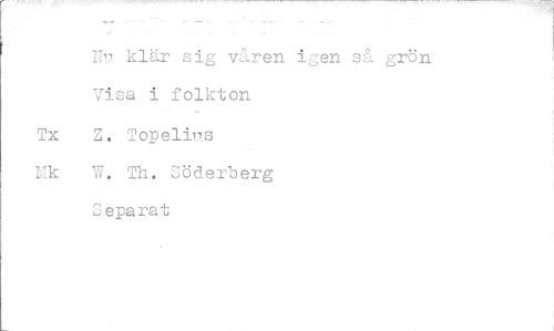 //// klr sig våren i7en så grön Visa i folkton //// Tx Z. Topelip_s //// rk w. Th. Söderberg Separat ////