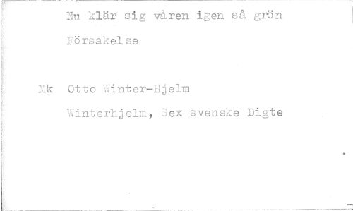 //// Nn klär sig våren igen så grön Försakelse //// mic Otto Winter—Hjelm //// Winterhjelm, Sex svenske Digte ////