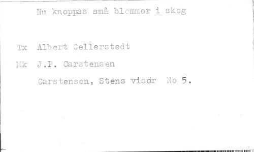 //// Nu knoppas små blommor i skog //// Tx Albert Gellerstedt //// Mk J.P. Carstensen //// Carstensen, Stens visar No 5. ////